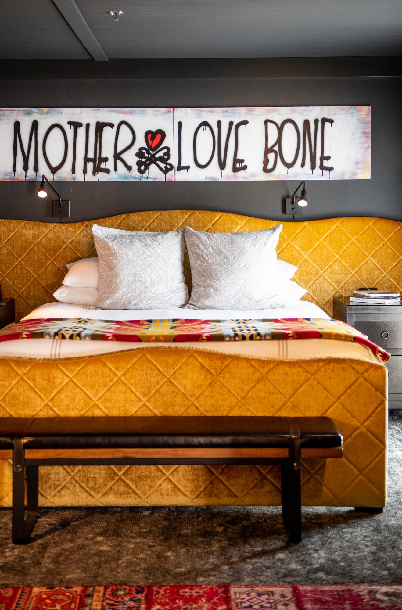 Transformed a suite at the iconic Edgewater Hotel into an ode to Pearl Jam. The project commemorates the musical legacy of the historic hotel perched over Elliot Bay in downtown Seattle. Utilizing vintage pieces, memorabilia and graphics from the bands own warehouse of goods to craft an authentic space. Probably the only hotel suite that comes with a guitar you can jam out with.